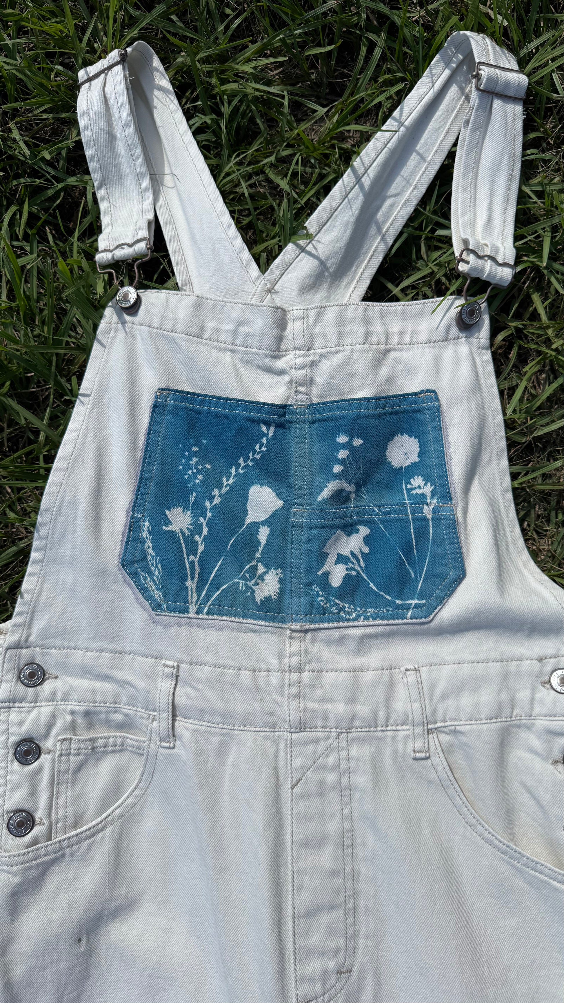 Free People We the Free white loose fit overalls • size medium, 32x29